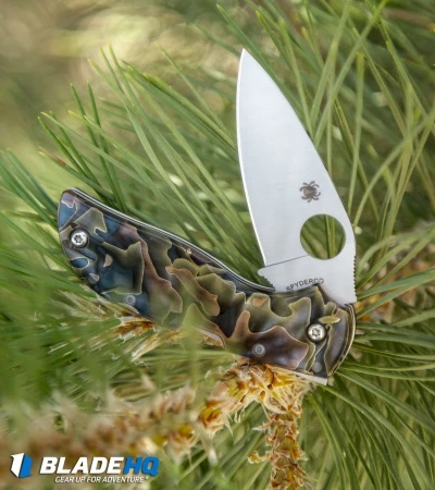 This Spyderco Chaparral model comes equipped with a strikingly beautiful handle design from Raffir Noble. Raffir uses brass and copper mesh and acrylic material to create truly unique 3-D handle patterns. All other details of this model are consistent with the Chaparral family of knives.