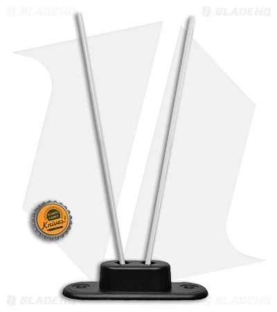 The Spyderco Galley-V knife sharpening system comes with two fine-grit ceramic rods and an ABS plastic base with set angle guides. The Galley-V sharpening system is made to hone a wicked, 20-degree edge on serrated and plain-edged knives. The process is as easy as attaching (via clamps, screws, etc.) the base to your surface of choice, positioning the rods, and pushing the edge of your knife down along them. Detailed instructions, tips and tricks, and general sharpening knowledge are contained in the included instructions. Experience the pure satisfaction of cutting with a knife sharpened by your own hand.