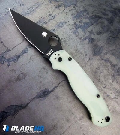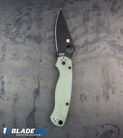 This Blade HQ Exclusive Spyderco M4 Paramilitary 2 features a black CPM blade and an exclusive natural jade G-10 handle.