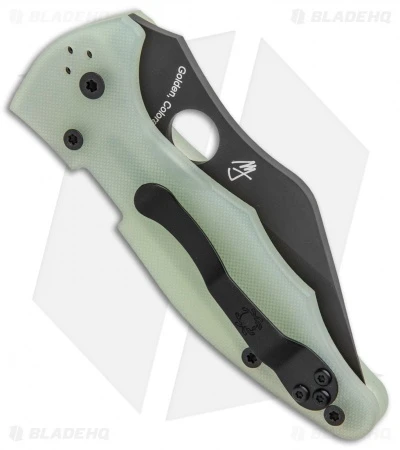We’ve tweaked the standard Yojimbo 2 configuration to create a unique addition to our exclusive Spyderco lineup. The standard blade has been upgraded with premium CPM-M4 steel, a high-speed steel with excellent toughness and edge retention qualities. The standard handle has been replaced with translucent green natural G-10 scales. The blade, pocket clip and hardware have also been blacked out, for a striking contrast again the natural G-10.