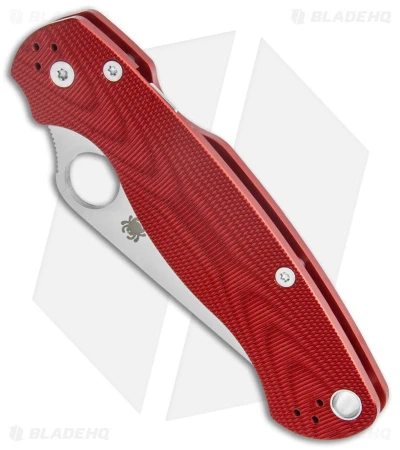 This Blade HQ Exclusive Spyderco Paramilitary 2 features a satin blade and a red aluminum handle.