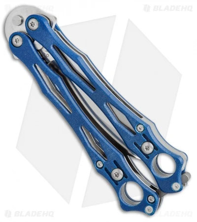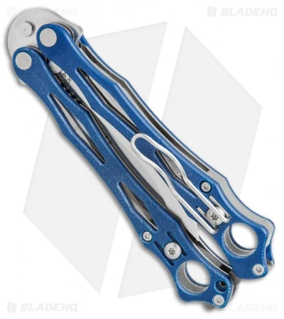 The Spyderco Smallfly butterfly knife features a 3″ plain edge, flat ground 154CM stainless blade. The handle has skeletonized stainless steel with blue G-10 overlays. A versatile, 4 way reversible wire pocket clip, allows for multiple carry options. The latch is spring loaded for quick opening. Screw together construction for easy adjustment and cleaning.