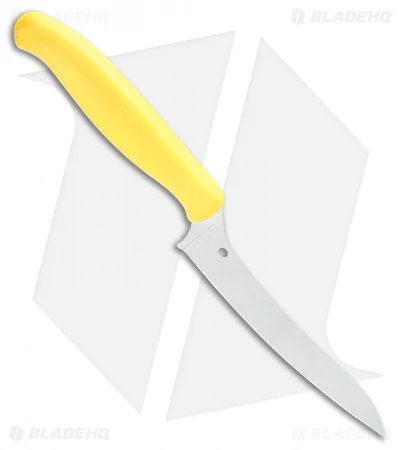 This Spyderco Z-Cut has a yellow handle and a pointed blade with a plain edge.